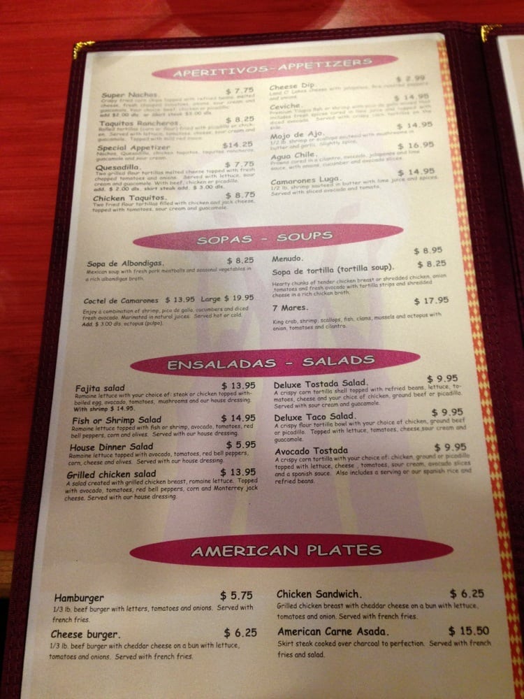 Start your culinary journey with tempting Aperitivos like the Super Nachos or the Taquitos Rancheros, both designed to whet your appetite. Dive into the rich and hearty Sopas, particularly the Sopa de Albondigas, a delightful Mexican soup brimming with fresh pork meatballs and seasonal vegetables.
